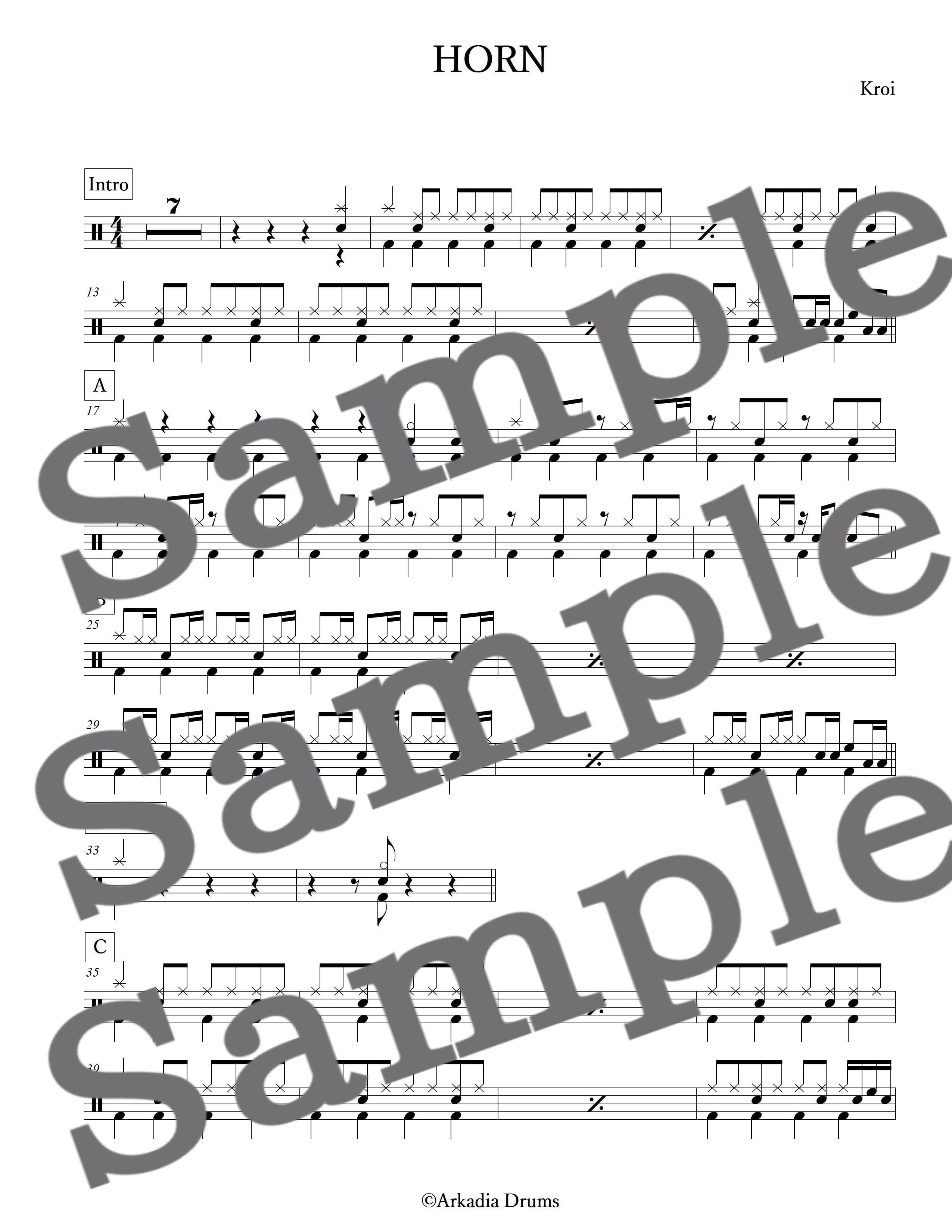 HORN(Kroi)のドラム楽譜です。