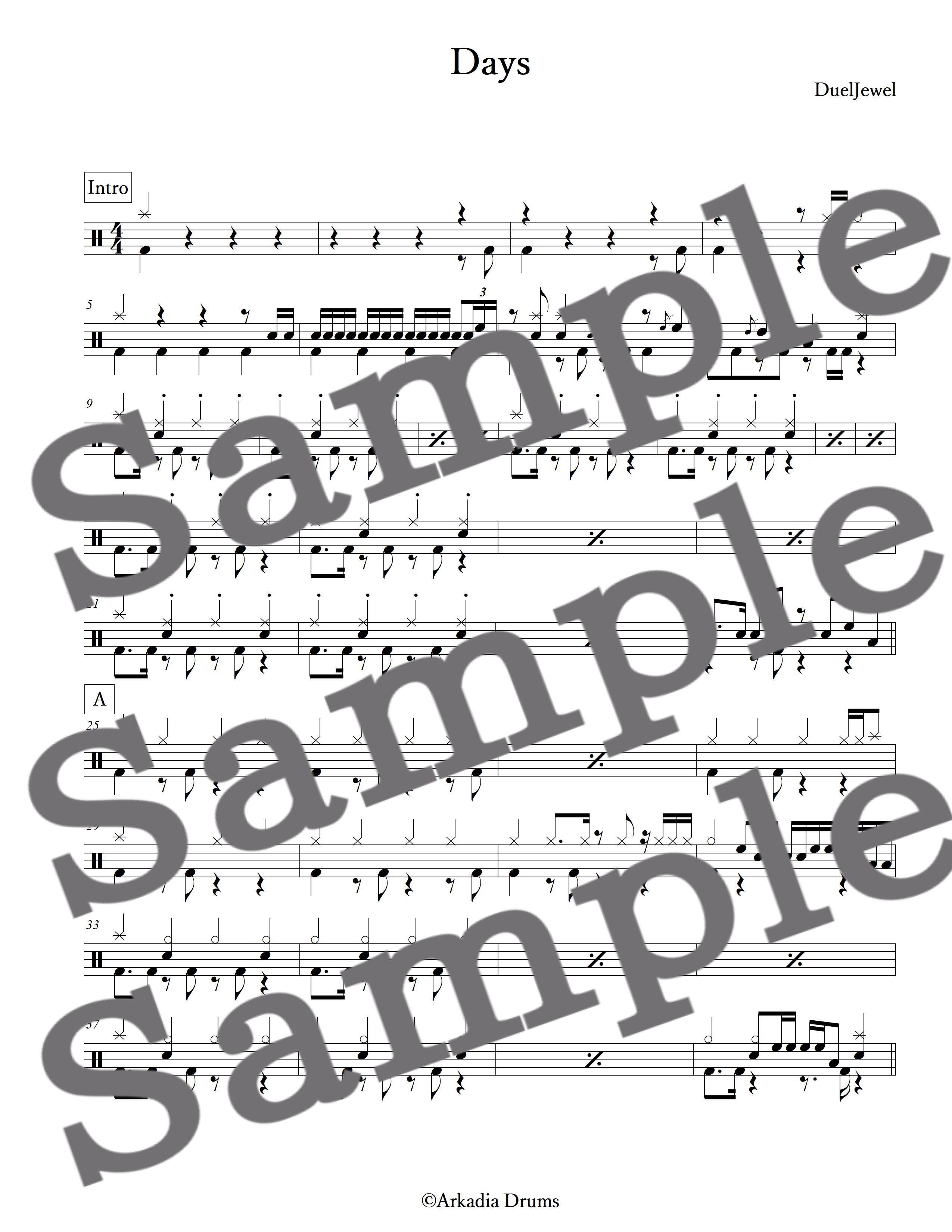 Days(DuelJewel)のドラム楽譜です。