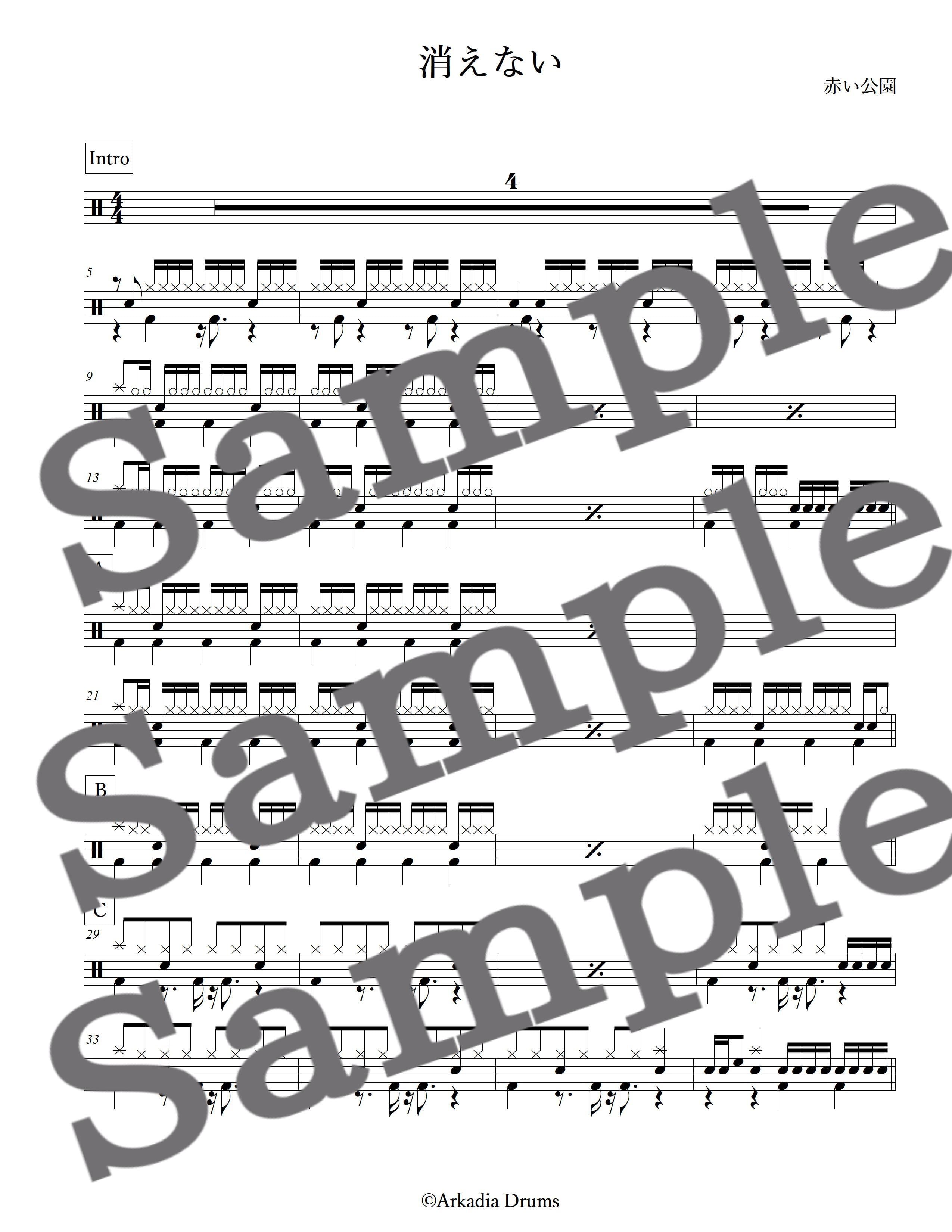 消えない(赤い公園)簡単アレンジバージョンのドラム楽譜です。