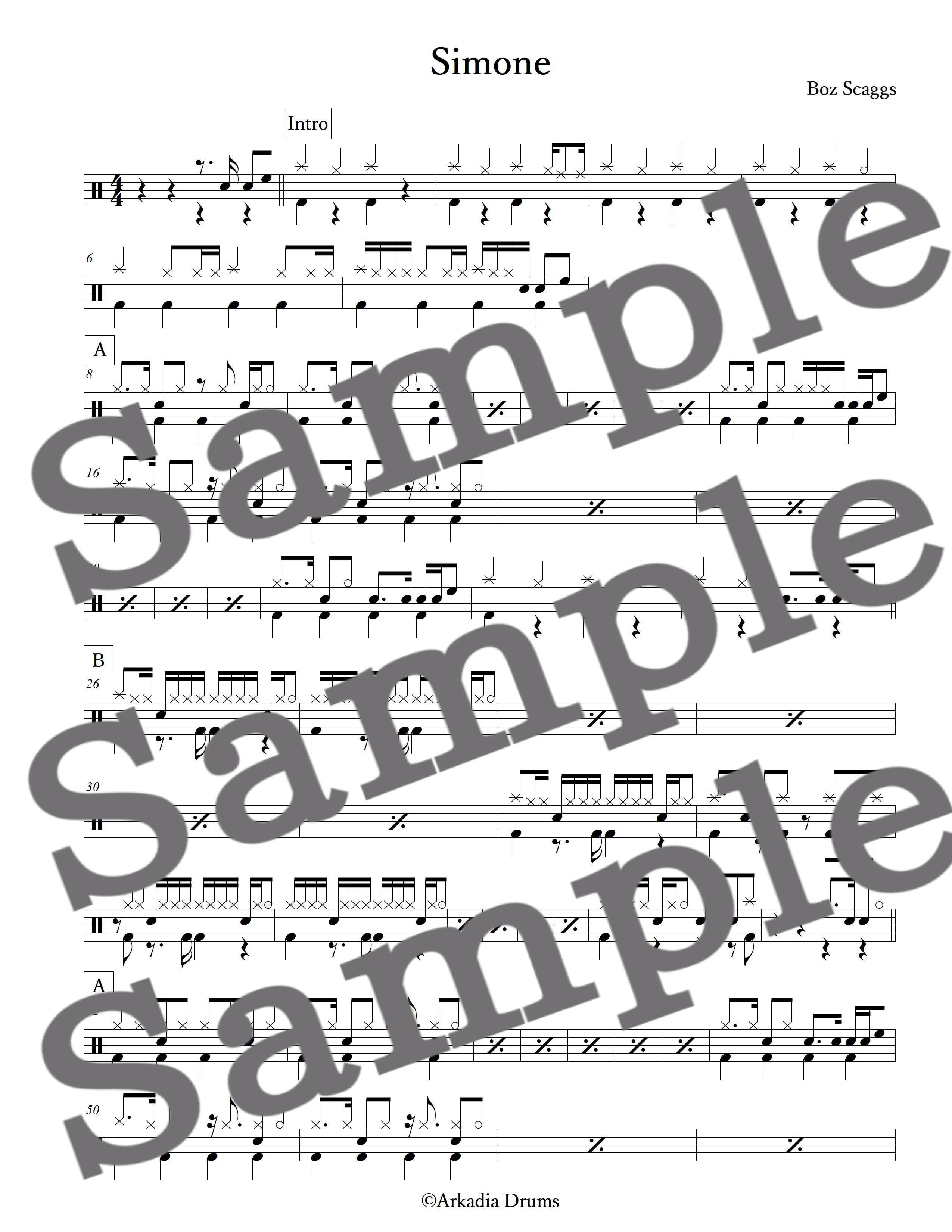 ドラムのみの楽譜であること、また大きめのセクションマークを配置しているので、演奏中でも迷いにくいのが特徴です。
