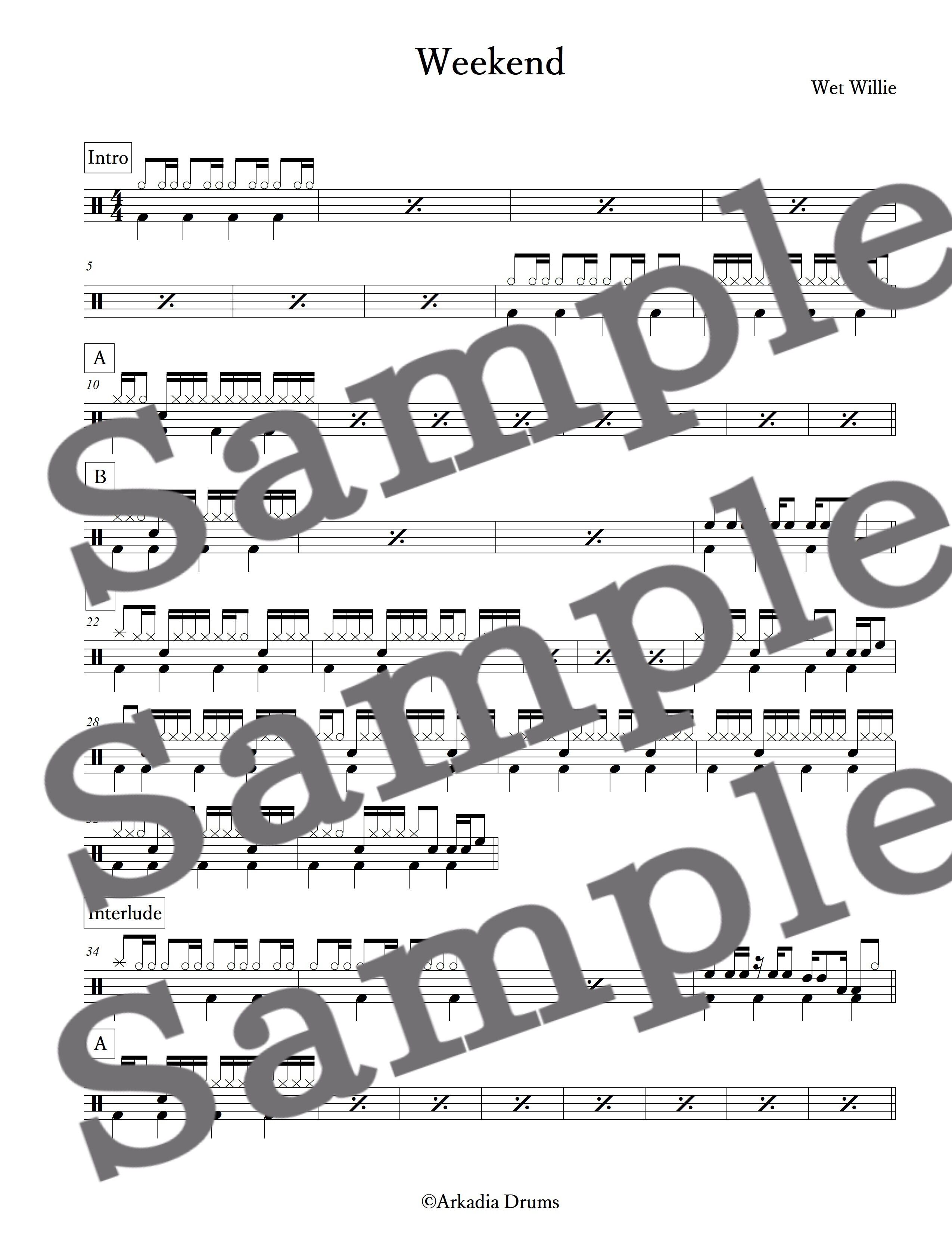 Weekend(Wet Willie)のドラム楽譜です。