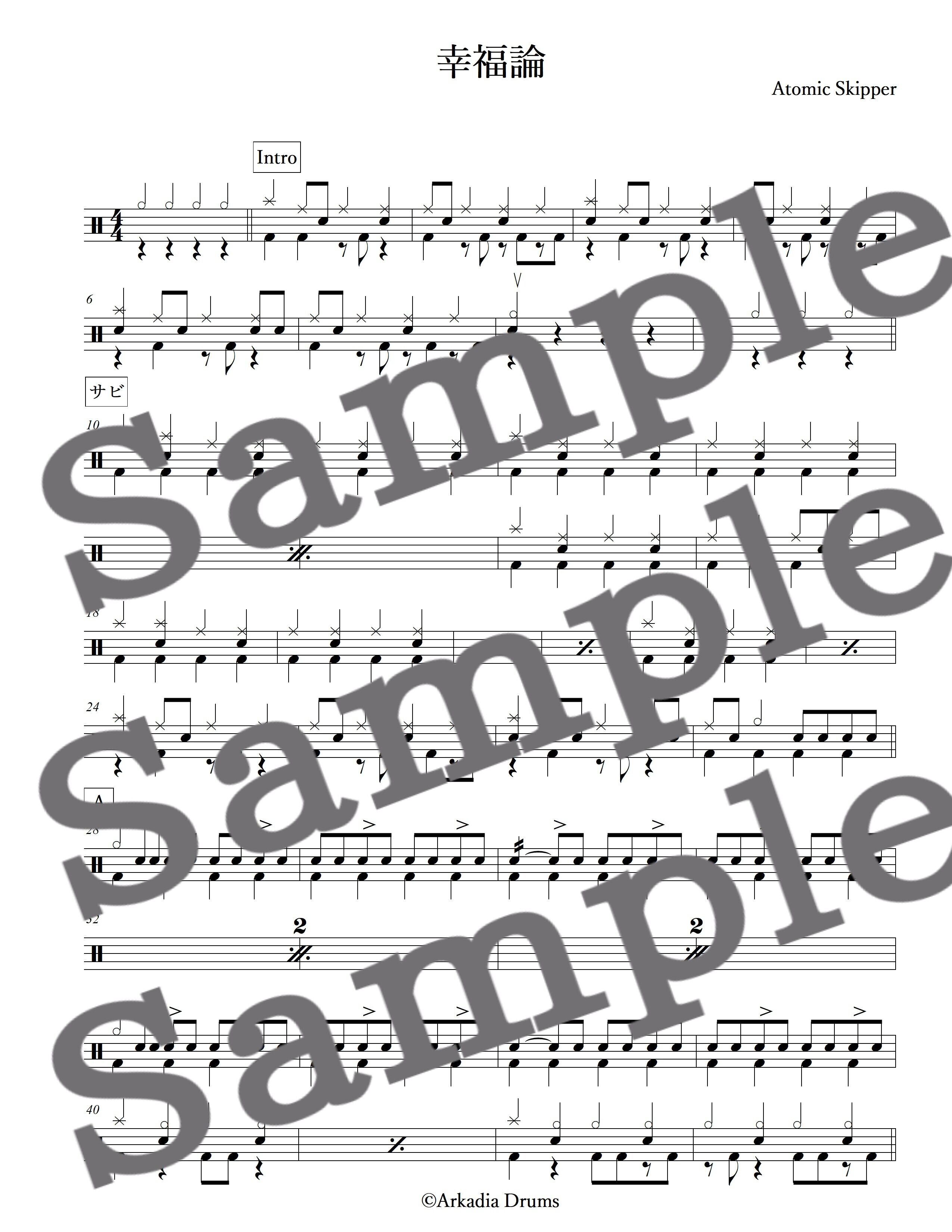 幸福論(Atomic Skipper)のドラム楽譜です。