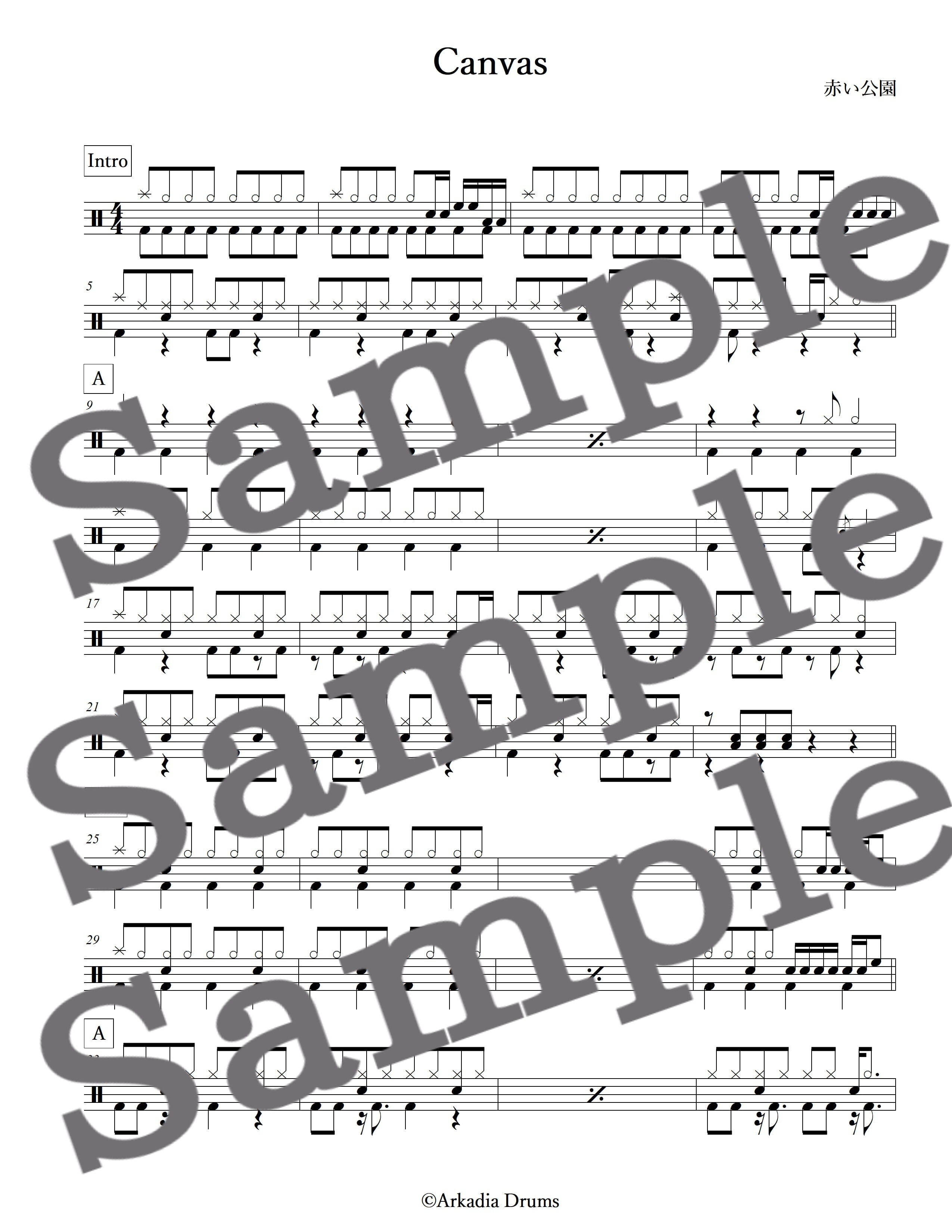Canvas(赤い公園)簡単アレンジバージョンのドラム楽譜です。